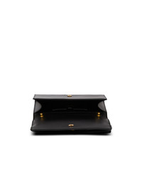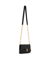 Crinkled leather wallet with Shuffle chain - Carry in the hand, on the shoulder or across the body - Detachable chain and leather shoulder strap - Flap with belt embellished with a metal buckle - Embossed Balmain Paris logo on the back - Magnetic fastening - Leather card pocket, embossed Balmain logo - Leather lining - Dimensions: 2.5 x 21 x 12 cm - Main material: 100% calfskin - Made in Italy - Item: FN1ON259LTFL