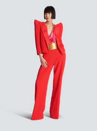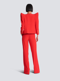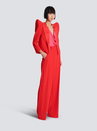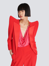 Cropped crepe jacket with structured shoulders - V-shaped neckline with cut Italian tailored collar - Tone-on-tone satin lapels - Pagoda shoulders - Long sleeves - Straight cuffs with 5 "Double Chain Lion" buttons in gold metal - Inside slash pocket - Twill lining - Cropped fit - Model measures 178cm and wears a size 36 - Main material: 100% viscose - Made in Slovakia - Item: EF0SC260MB01100% of the viscose fibres used to make this garment come from certified, sustainably managed forests