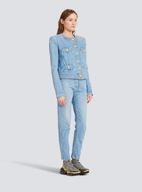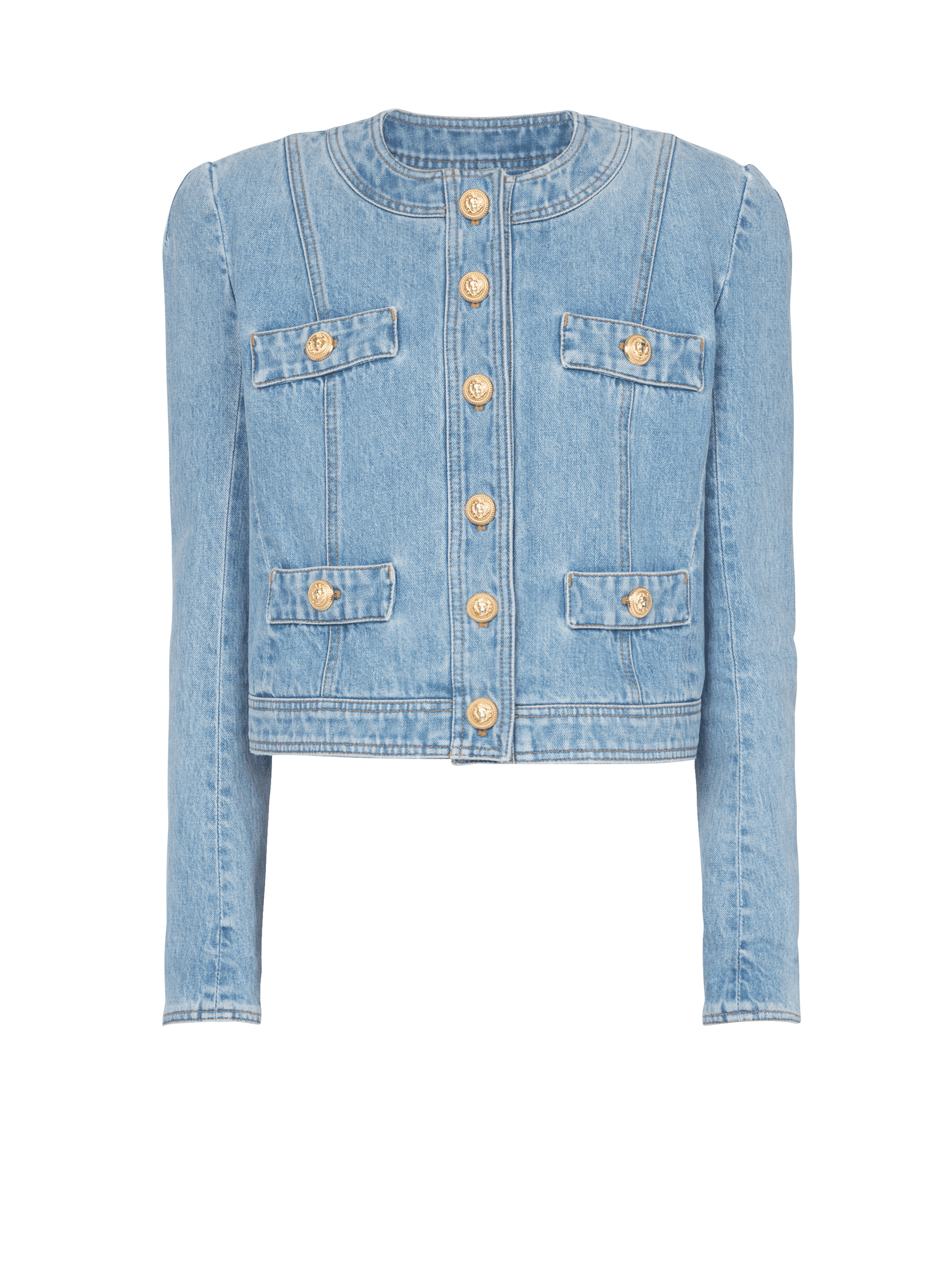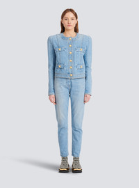 Denim jacket - Long sleeves - buttoned fastening in front - flat front pockets - embossed gold-tone buttons - Fitted cut - Fits true to size - select your usual size - The model is wearing FR size 36 - The model's height is 180 cm - Material: 100% Cotton - Made in Italy - Item: YF1SC037DC23