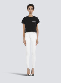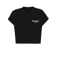 Cropped eco-designed cotton T-shirt with small flocked Balmain logo