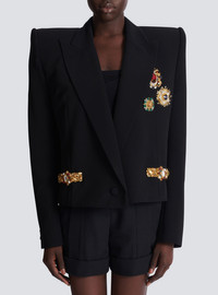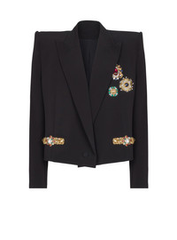 Cropped embroidered jacket - Italian tailored collar - Long sleeves - Structured shoulders - Cuffs with covered buttons - Breast pocket and single button fastening - Straight, hip-grazing cut - Model measures 177cm and wears a size 36 - Main material: 100% viscose - Made in India - Item: GF1SC295PD36100% of the viscose fibres used to make this garment come from certified, sustainably managed forests