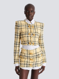 Cropped jacket in glitter tweed - Round neck - Long sleeves - Double-breasted "Lion Head" button fastening - Cropped straight cut - Model measures 177cm and wears a size 36 - Main material: 52% polyester 28% polyamide 20% cotton - Made in Bulgaria - Item: GF1SD280XL73