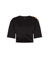 Cropped tie T-shirt - Round neckline - Short wide sleeves with sewn turn-ups and drop shoulders - Shoulder tab with 3 "Lion Head" press studs - Draped sides - Asymmetric hem - Cropped fit - Model measures 179cm and wears a size S - Main material: 100% cotton - Made in Portugal - Item: FF0EE012GF23