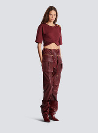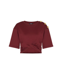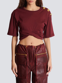 Cropped tie T-shirt - Round neckline - Short wide sleeves with sewn turn-ups and drop shoulders - Shoulder tab with 3 "Lion Head" press studs - Draped sides - Asymmetric hem - Cropped fit - Model measures 179cm and wears a size S - Main material: 100% cotton - Made in Portugal - Item: FF0EE012GF23