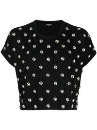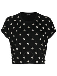 Balmain Ladies Ehv Noir / Crystal Crystal-Embellished Cotton T-Shirt, Size Small