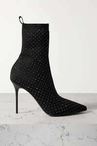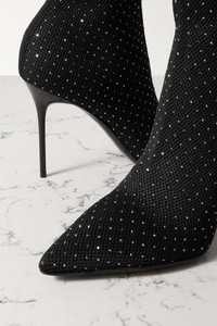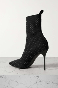 EDITORS'NOTES Balmain's ankle boots are embellished with tiny shimmering crystals for a glamorous finish that feels so true to the label. They're knitted in a sock silhouette and have a high heel. SIZE & FIT - Fits true to size, take your normal size - Italian sizing DETAILS & CARE - Black stretch-knit - Pull on