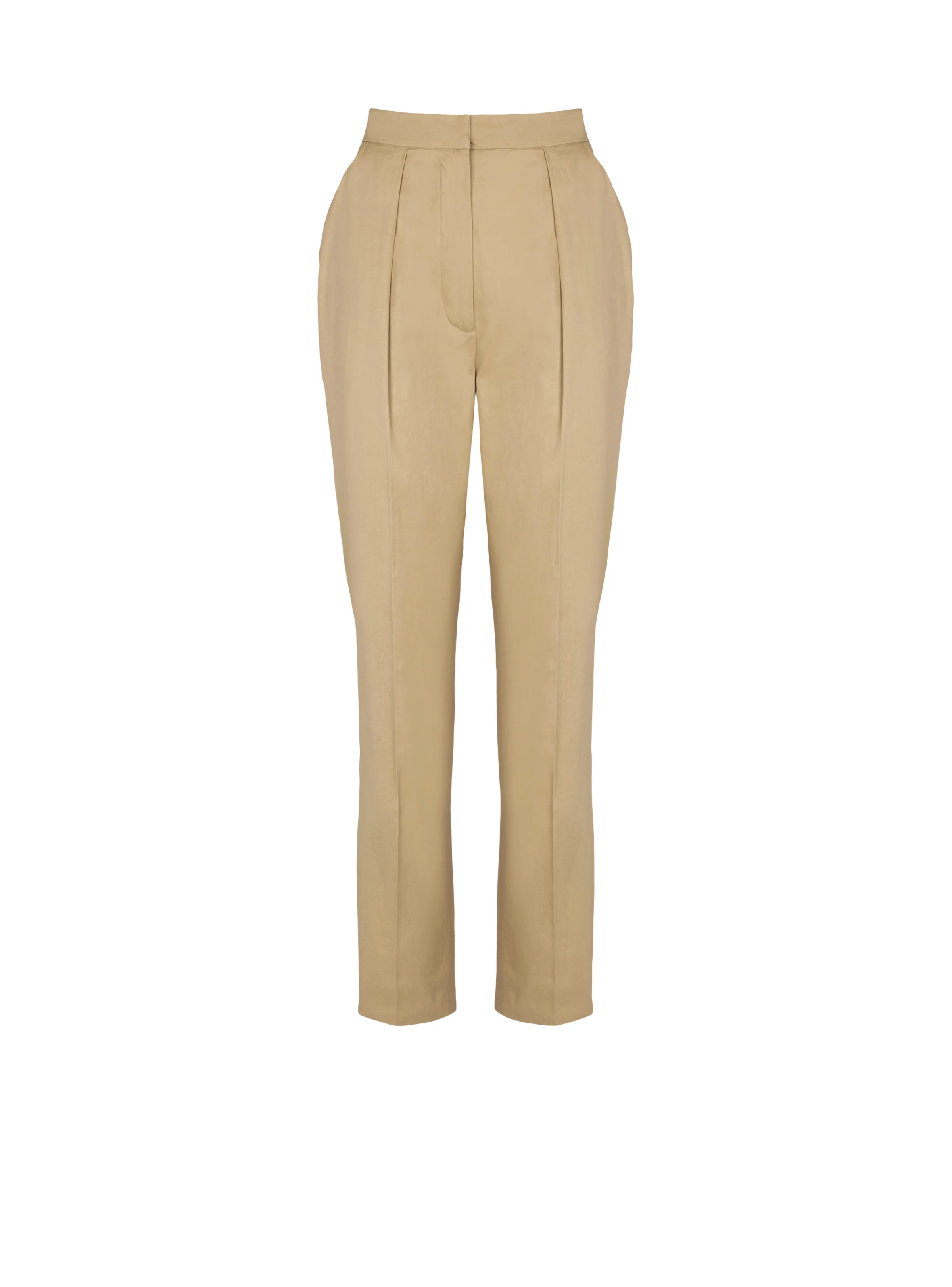 Darted 7/8 trousers in cotton gabardine - Italian side pockets - Waistband with belt loops - Fastening with zip fly, button and hook - High waist - Straight cut - Model measures 177cm and wears a size 36 - Main material: 100% cotton - Made in Portugal - Item: GF1PN190CG43100% of the cotton fibres used to make this garment are certified and organically farmed
