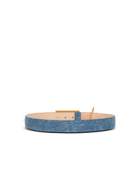 Denim and calfskin belt with safety pin - Adjustable fastening, stud button - Buckle with Balmain-engraved metal plate - Metal safety pin loop - Gold hardware - Embossed Balmain logo - Width: 3.5 cm - Main material: 100% cotton - Made in Italy - Item: EN1WJ167TDTW