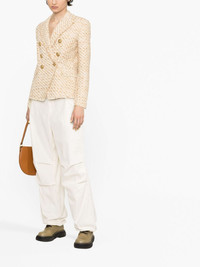 double-breasted tweed blazer Balmain’s double-breasted blazer is emblematic of the brand’s storied house codes. Crafted from melange tweed, it’s detailed with ever-present engraved gold-tone buttons. Highlights - Beige - Tweed - Embossed gold-tone buttons - Peak lapels - Double-breasted button fastening - Long sleeves - Jetted chest pocket - Two side flap pockets - Straight hem Imported Composition Outer: Cotton 49%, Polyamide 27%, Polyurethane 11%, Viscose 10%, Acrylic 2%, Wool 1% Lining: Viscose 52%, Cotton 48% SIZE & FIT Model measurements Height 5 ft 10 in(1.78 m) Bust/Chest 30.7 in(78 cm) Hips 34.64 in(88 cm) Waist 23.22 in(59 cm) Measurement SLEEVE LENGTH 24.4 in(62 cm) LENGTH 25.59 in(65 cm) FittingInformation Designed for a slim fit that sits just away from the body offering a close yet comfortable fit Constructed with narrow shoulders Made from a midweight non-stretch fabric This piece fits small – take one size up Washing instructions Dry Clean Only