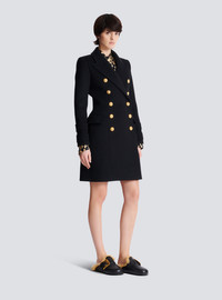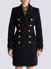 10-buttons wool and cashmere coat - Italian tailored collar - Structured shoulders - Long sleeves with double tab - 2 side slash pockets with flaps - Double-breasted fastening with 10 buttons (7 of which are decorative) - "Chain Lion" buttons in gold metal - Slash inside pocket with button - Twill lining - Straight mid-length cut - Model measures 178cm and wears a size 36 - Main material: 90% virgin wool 10% cashmere - Made in Bulgaria - Item: FF1UB065WB50