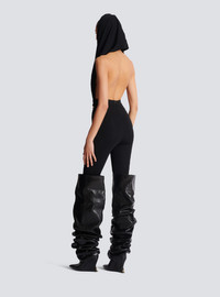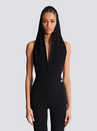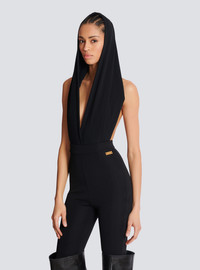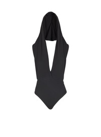 Draped jersey bodysuit with hood - Draped plunging wrap neckline - Waist panel - Invisible side zip fastening - 3 press studs at the crotch - Backless - Loose top and fitted bottom - Model measures 179cm and wears a size 36 - Main material: 100% viscose - Made in Portugal - Item: FF0BA270JE50100% of the viscose fibres used to make this garment come from certified, sustainably managed forests