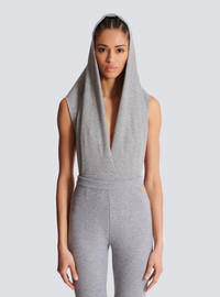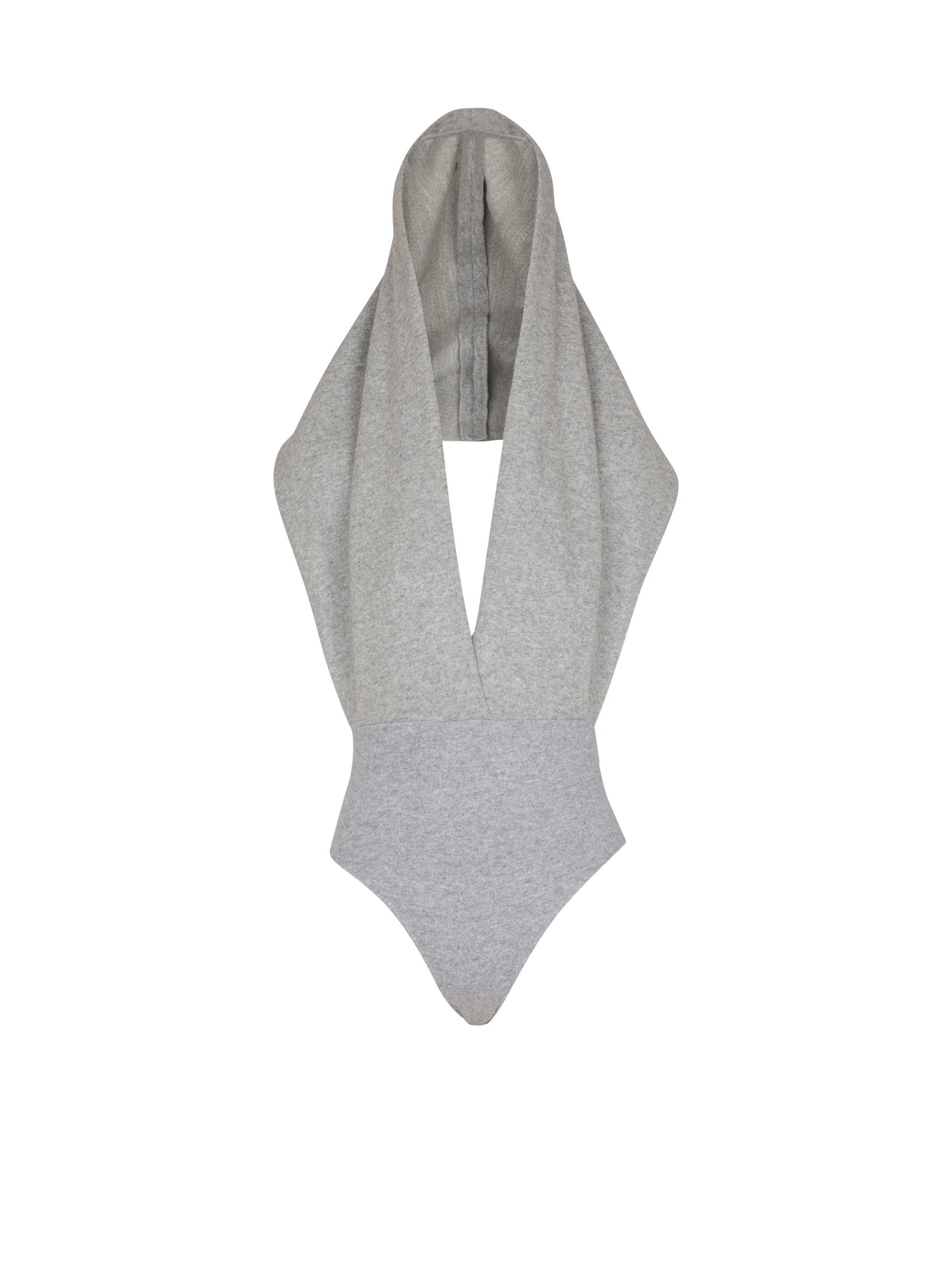 Draped bodysuit with hood - Draped plunging wrap neckline - Waist panel - Invisible side zip fastening - 3 press studs at the crotch - Backless - Loose top and fitted bottom - Model measures 179cm and wears a size 36 - Main material: 50% virgin wool 47% cotton 3% polyamide - Made in Portugal - Item: FF0BA275JL17
