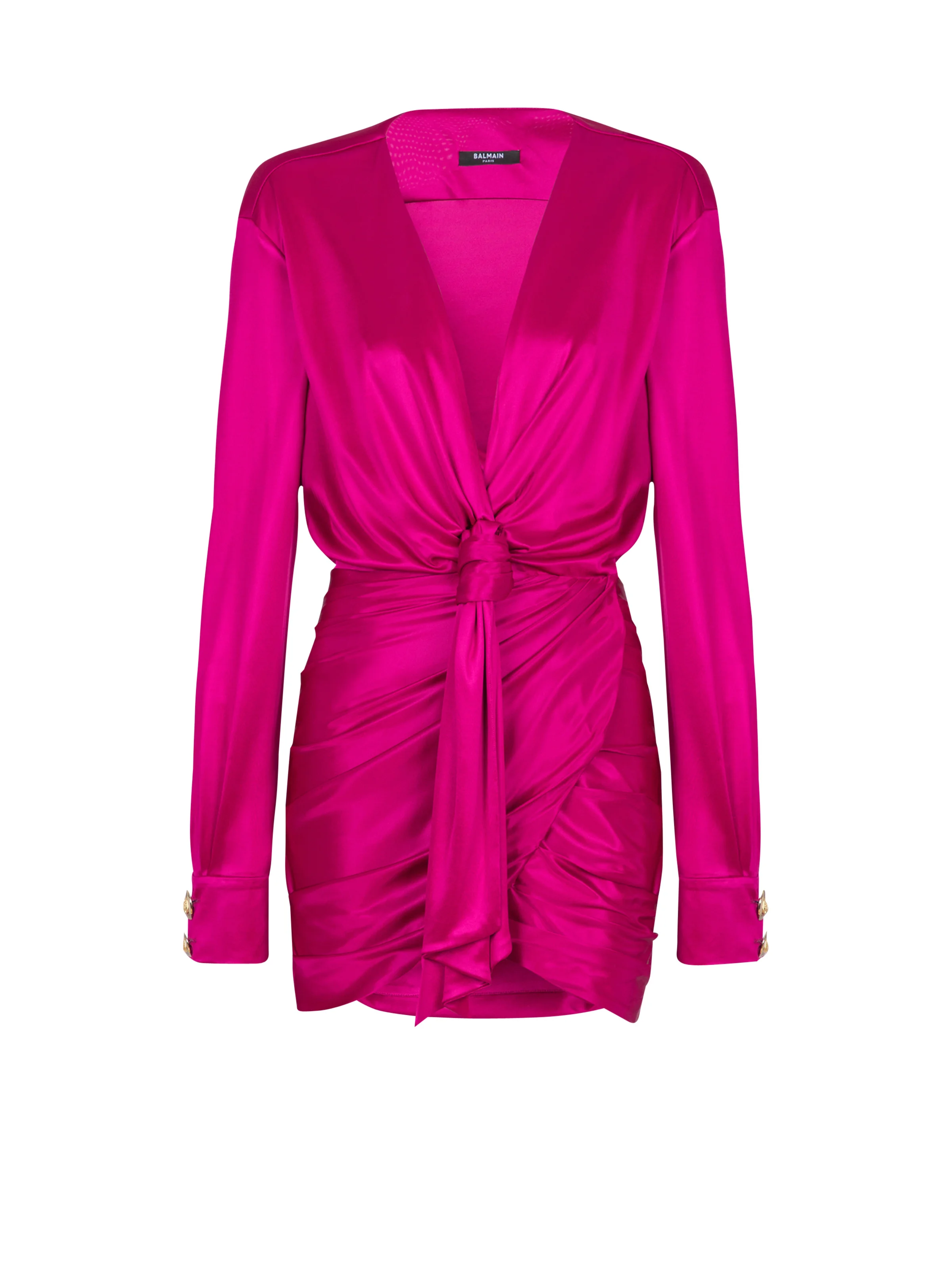 Draped interlock jersey dress - V-shaped neckline - Long sleeves - Straight cuffs with 2 metal “Gold and Gold Coin” buttons - Draped skirt with wrap effect at the front - Invisible side zip fastening - Cropped slim fit - Model measures 178cm and wears a size 36 - Main material: 100% viscose - Made in France - Item: FF1R9323JK74