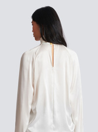 Draped silk blouse - High neck - Long raglan sleeves with large open cuffs - Draped front with opening at the bottom - "Lion Head Chain" button fastening - Flowing fit - Model measures 175cm and wears a size 36 - Main material: 100% silk - Made in Portugal - Item: GF1IL150SE95100% of the silk fibres in this garment come from certified, organic silk farms