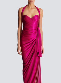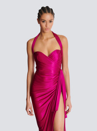 Flowing draped interlock jersey dress - Matching straps to tie at the neck - Sweetheart neckline - Knotted-effect panel on the side - Asymmetric gathers and pleats - Front split - Side fastening with invisible zip and hook - Long, slim fit - Model measures 179cm and wears a size 36 - Main material: 100% viscose - Made in France - Item: FF1RP912JK74