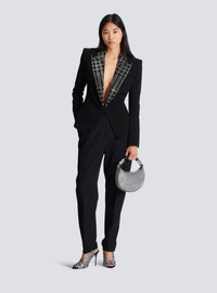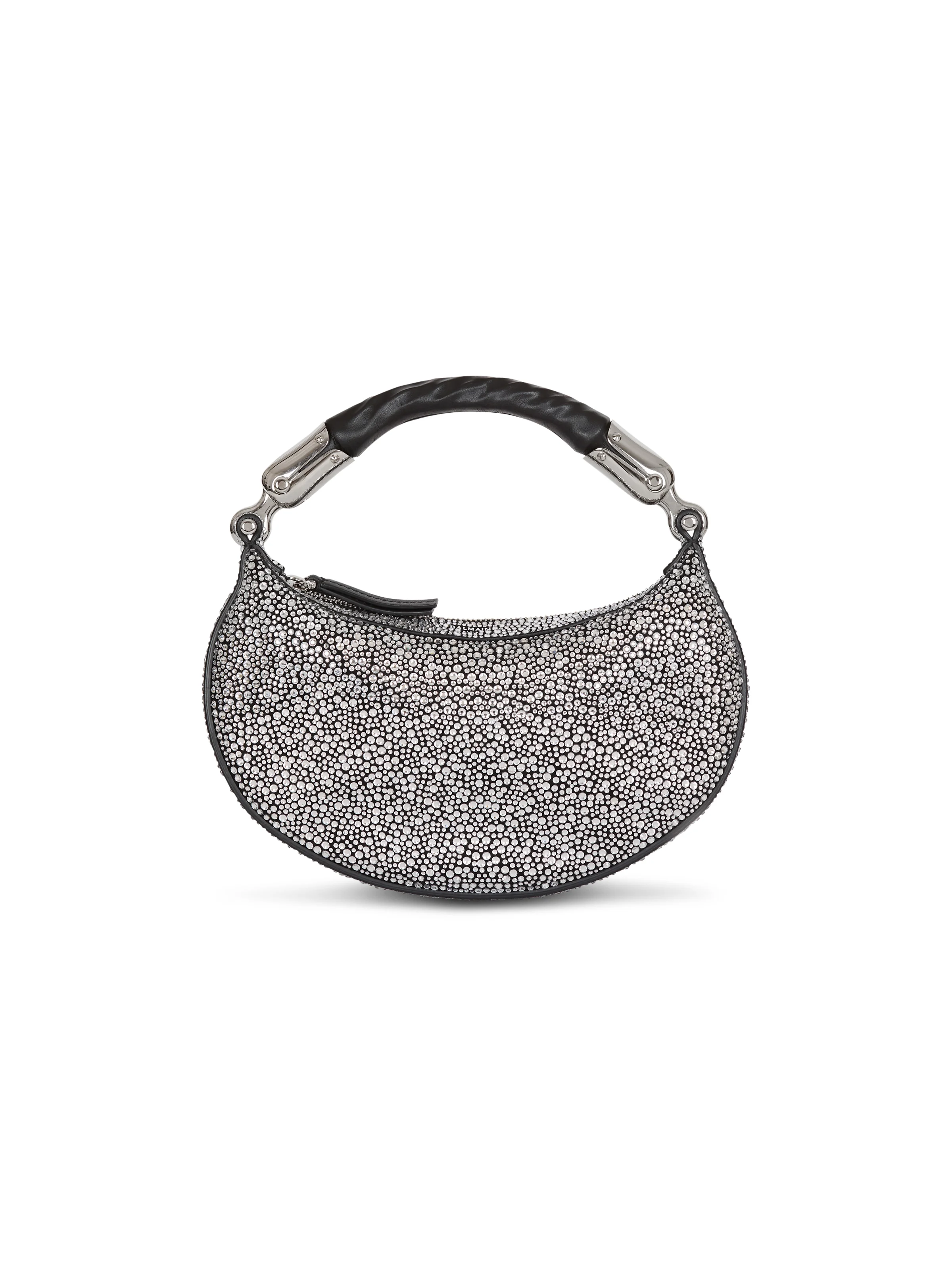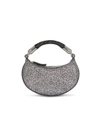 Ebene Mini bag in suede and crystals - Carry in the hand or wear on the shoulder - Covered ebony handle - Zip fastening with Balmain logo - Silver metallic hardware - Soft and slouchy silhouette - Dimensions: 7 x 26 x 13 cm - Main material: 100% goatskin - Made in Italy - Item: GN1BS027AAHX