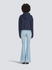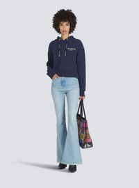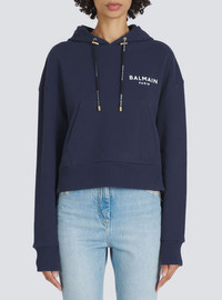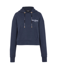Cropped organically cultivated cotton sweatshirt Long sleeves, drawstring hood, ribbing, flocked white Balmain logoCasual cut Fits true to size, select your usual size The model is wearing FR size 36 The model's height is 177 cm / 5 ft 9 in, bust 81 cm / 32 in, waist 58 cm / 23 in, hips 89 cm / 35 in Made in Portugal Materials: 100% organically cultivated cotton Item: XF0JP000BB01