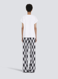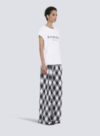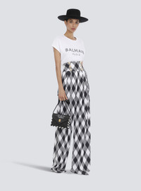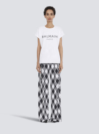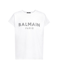 Organically cultivated cotton T-shirt Short sleeves, crew neck, black rhinestone Balmain logoCasual cut Fits true to size, select your usual size The model is wearing size S The model's height is 177 cm / 5 ft 9 in, bust 81 cm / 32 in, waist 58 cm / 23 in, hips 89 cm / 35 in Made in Portugal Material: 100% organically cultivated cotton Item: XF0EF010BB03