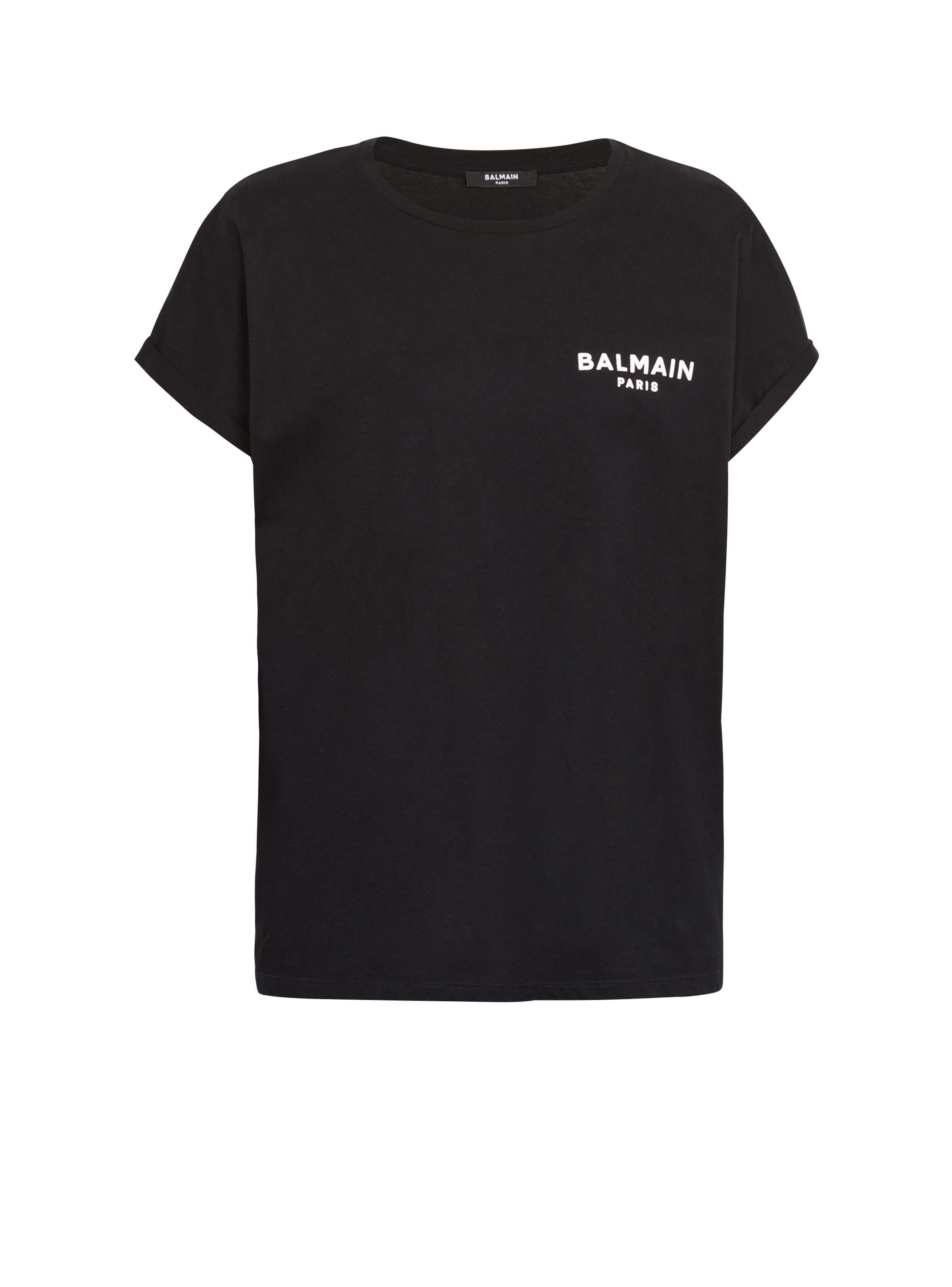 Eco-designed cotton T-shirt with small flocked Balmain logo