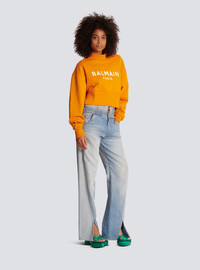 Eco-responsible cotton cropped sweatshirt with Balmain logo print