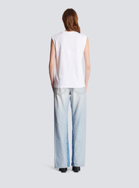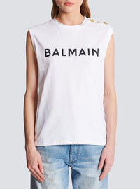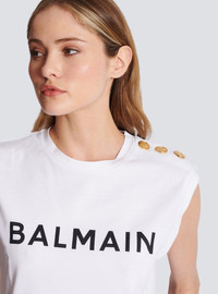 Eco-responsible cotton T-shirt with Balmain logo print - Short sleeves - round neck - gold embossed buttons on the shoulder - Relaxed fit - This item fits true to size (select your usual size) - The model is wearing a size S - The model's height is 177 cm - Material: 100% organic cotton - Made in Portugal - Item: AF1ED000BB02