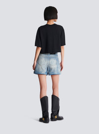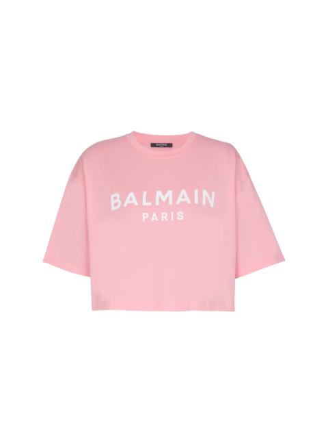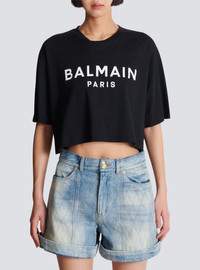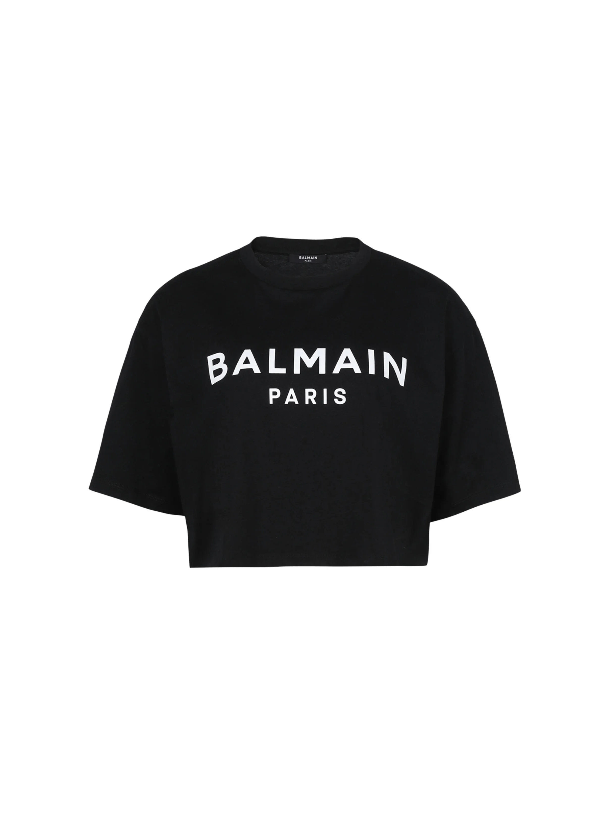 T-shirt with Balmain Paris print - Cropped, relaxed fit - Round neck with ribbed trim - Short sleeves - Contrasting Balmain Paris logo printed on the front - Model measures 180cm and wears a size S - Main material: 100% cotton - Made in Portugal - Item: BF1EE020BB02100% of the cotton fibres used to make this garment are certified and organically farmed