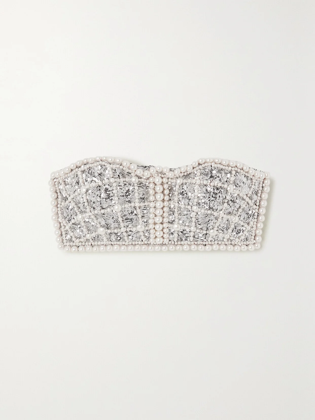 Cropped Faux Pearl-embellished Sequinned Chiffon Bustier Top