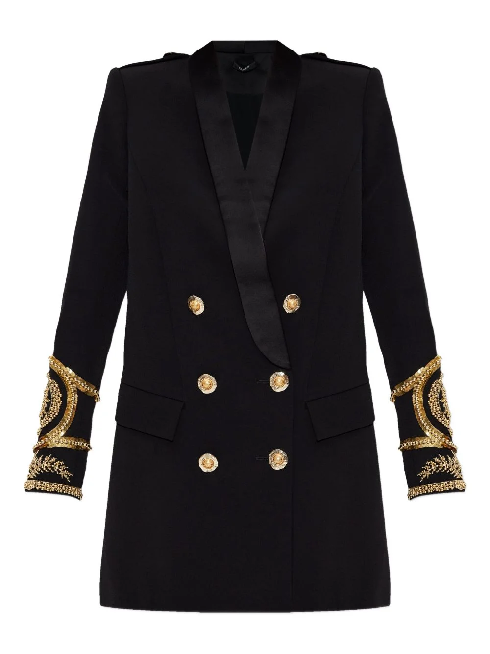 embellished double-breasted dress Highlights - Black - Double-breasted fastening - Gold embellishment - Sequin embroidery - Beaded embroidery - Long sleeves Imported Composition Viscose 100% Washing instructions Read Manufacturer Guidelines