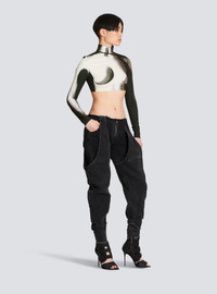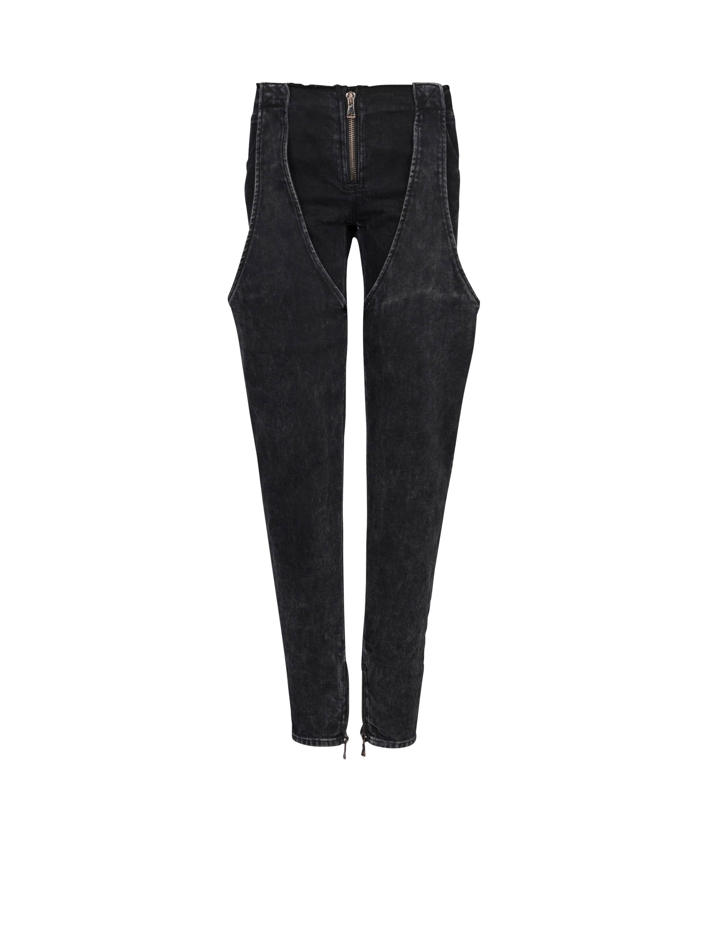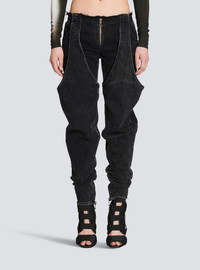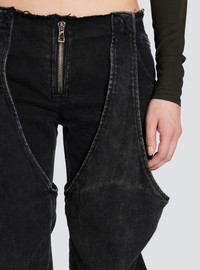 Faded cotton jeans Four pockets, zips at the ankles, garter effect Wide cut This item fits true to size (select your usual size) The model is wearing a size S The model's height is 177 cm/5 ft 9 in, bust 81 cm/32 in, waist 58 cm/23 in and hips 89 cm/35 in Made in Italy Material: 98% cotton, 2% elastane Item: YF0MH031DC59
