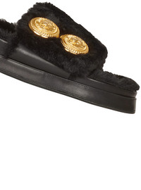 Faux fur Tam flat mules - Faux fur insole - leather outsole - coin button adornments on top - Fits true to size: select your usual size - Main materials: Cotton, Polyester, Calfskin - Made in Italy - Item: YN1UL776TCFB