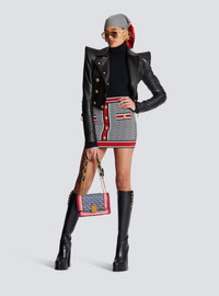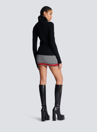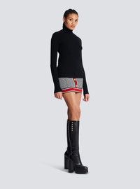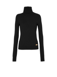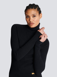 Fine knit turtleneck jumper - Tight fit - Turtleneck - Long sleeves - Mini, engraved golden metal Balmain Paris plaque on the front - Model measures 176cm and wears a size 36 - Material: 100% merino wool - Made in Italy - Item: BF1KH035KE93