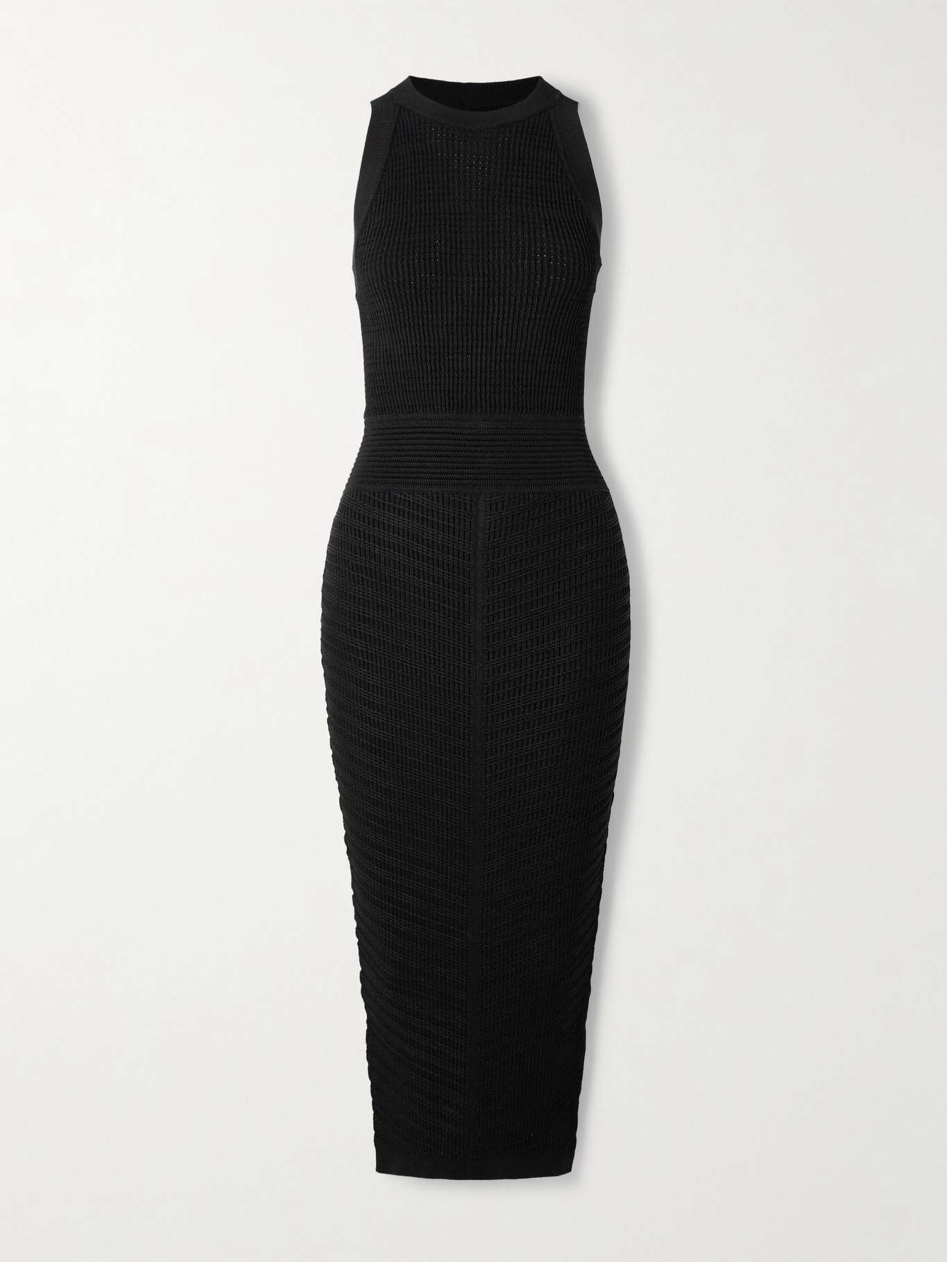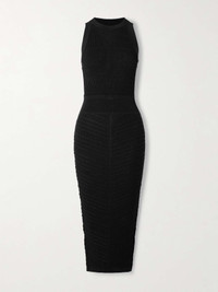 Cutout ribbed-knit halterneck midi dress Black