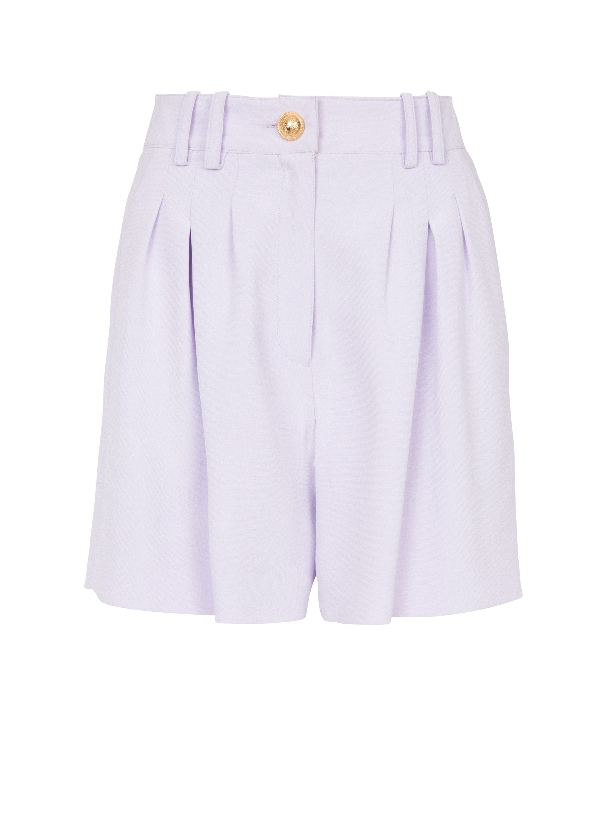 Flared crepe shorts - Loose and flared cut - Zip fastening, 1 engraved gold"crest" button at the waist - Waistband with double loops - Italian pockets, back pockets - Triple knife pleats at the front - Invisible hem, tone-on-tone satin lining - Model measures 177cm and wears a size 36 - Materials: 100% viscose - Made in Slovakia - Item: AF0PA090VB00 100% of the viscose fibres in this garment come from sustainably managed FSC®-certified forests