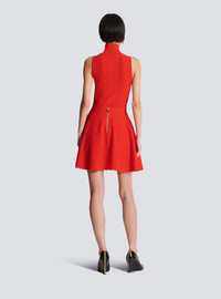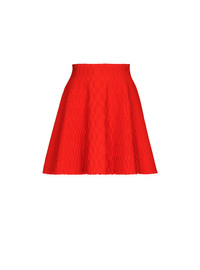 Flared crocodile-knit skirt - Elasticated waist - Visible zip fastening on the back with Balmain Paris-engraved slider - Raw hem - Flared cut - Model measures 178cm and wears a size 36 - Main material: 85% viscose 15% polyester - Made in Italy - Item: FF0LB923KJ03100% of the viscose fibres used to make this garment come from certified, sustainably managed forests