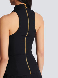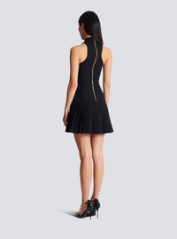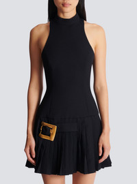 Halterneck grain de poudre dress - High neck - Pleated skirt hem with Anthem belt - Visible zip fastening on the back with Balmain Paris-engraved slider - Fit-and-flare cut - Model measures 175cm and wears a size 36 - Main material: 100% virgin wool - Made in Bulgaria - Item: GF1R3370WC09100% of the wool fibres used to make this garment are sourced from sheep farms that are certified and animal welfare-friendly