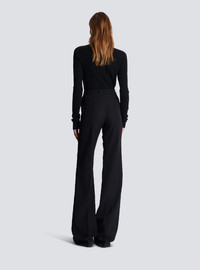 Classic wool trousers with creases - Flared cut - High waist - 2 slanted pockets - Fastened with golden metal zip and invisible hook at the front - Model measures 175cm and wears a size 36 - Material: 100% certified responsible wool - Made in Romania - Item: BF1PO105WC09