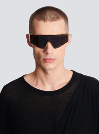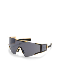 Fleche Sunglasses Full rectangular mask lenses, thin temples and Balmain logo 100% UV protection Case with Balmain logo included Lens: 118 mm Made in Japan Materials: Nylon, Titanium Item: ABPS138