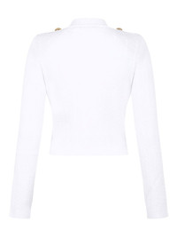 ribbed button cardigan Highlights - White - Ribbed knit - V-neck - Long sleeves - Button fastening - Shoulder buttons Made in France Composition Viscose 83%, Polyester 17% Washing instructions Read Manufacturer Guidelines