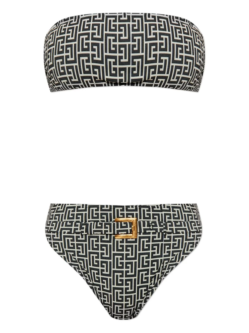geometric-print belted bikini Highlights - Black - Geometric print - Gold-tone hardware - Belted waist - Strapless - Be mindful to try on swimwear over your own garments. Made in Italy Composition Polyamide 81%, Elastane 19% Washing instructions Read Manufacturer Guidelines
