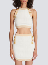 Gold-trimmed knit crop top