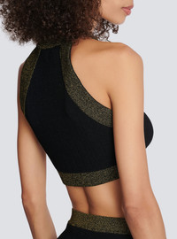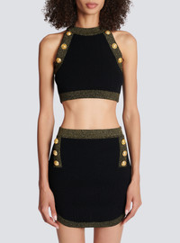 Gold-trimmed knit crop top