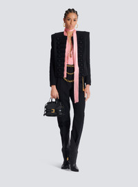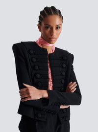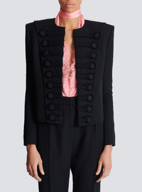 Grain de poudre edge-to-edge spencer jacket - Round neckline - Structured shoulders - Long sleeves - Straight cuffs with 5 covered buttons - Frogging with covered buttons, raw edging and textured detailing - Twill lining - Straight, cropped fit - Model measures 179cm and wears a size 36 - Main material: 100% sheep’s wool - Made in France - Item: FF1SK830WC09100% of the wool fibres used to make this garment are sourced from sheep farms that are certified and animal welfare-friendly