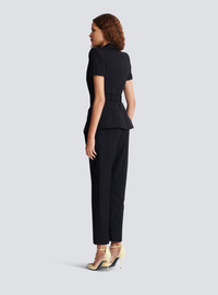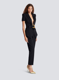 Short-sleeved grain de poudre jacket - Italian tailored collar - Short sleeves - Structured shoulders - No buttons, Anthem belt at the waist - Patch pockets at the sides - Tailored fit - Model measures 180cm and wears a size 36 - Main material: 100% virgin wool - Made in Bulgaria - Item: GF1SB225ME54100% of the wool fibres used to make this garment are sourced from sheep farms that are certified and animal welfare-friendly
