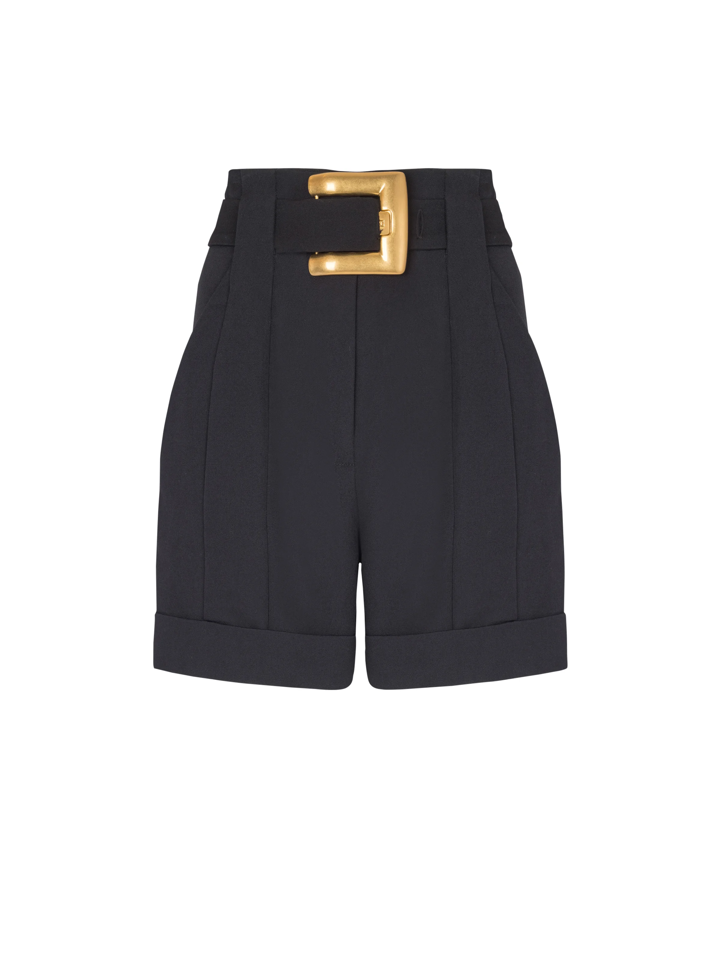 Grain de poudre shorts with belt - Waist with large belt loops and Anthem belt - Side slash pockets - Sewn turn-ups - High waist - Straight cut - Model measures 180cm and wears a size 36 - Main material: 100% virgin wool - Made in Bulgaria - Item: GF1PA375WC09100% of the wool fibres used to make this garment are sourced from sheep farms that are certified and animal welfare-friendly