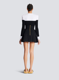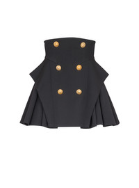High-waisted grain de poudre skirt - 6 decorative "Lion Double Chain" buttons in gold metal on the front - Structured side panels - Godet flares on the sides - Visible gold metal zip fastening on the back with Balmain Paris-engraved slider - Raw hems - Twill lining - A-line high-waisted fitted style - Model measures 179cm and wears a size 36 - Main material: 100% sheep’s wool - Made in Poland - Item: FF1LBA77WC09100% of the wool fibres used to make this garment are sourced from sheep farms that are certified and animal welfare-friendly
