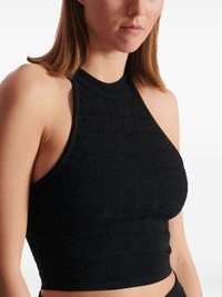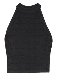 halterneck crocodile-effect top Highlights - Black - Halterneck - Crocodile effect - Sleeveless - Ribbed knit Made in France Composition Viscose 84%, Polyester 16% Washing instructions Read Manufacturer Guidelines