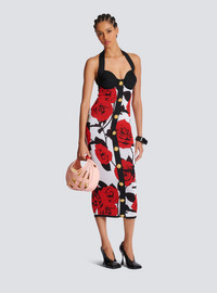 Halterneck dress in Red Roses jacquard knit