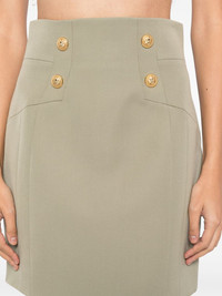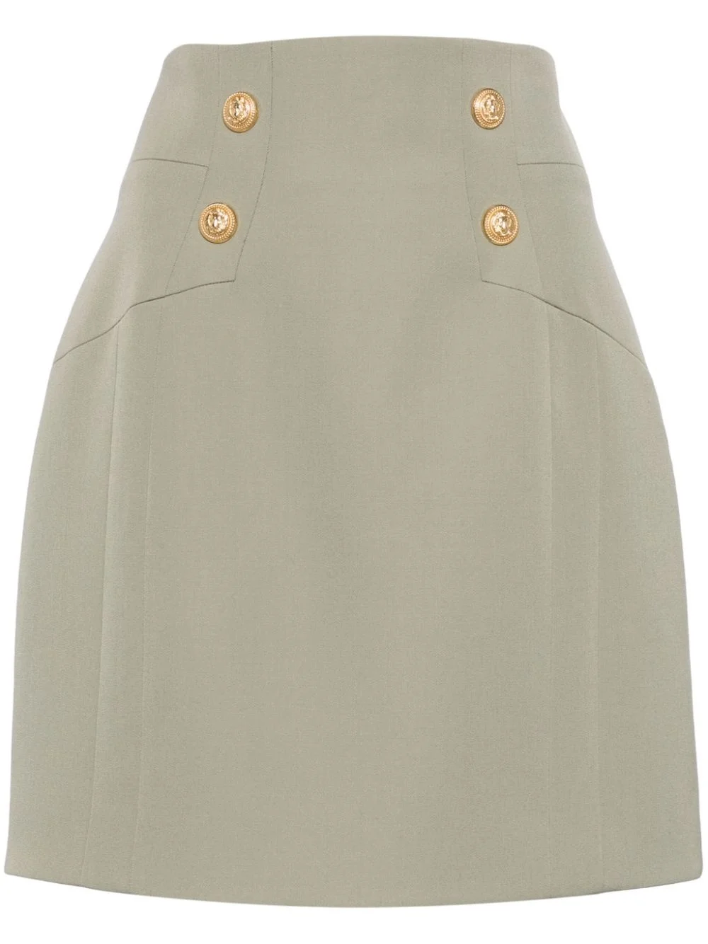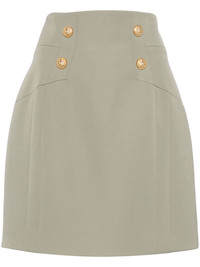 high-waisted wool miniskirt Highlights - Virgin wool - Olive green - Rear zip fastening - Gold-tone buttons - Gold-tone buttons embellishment - Straight hem - Full lining Imported Composition Lining: Viscose 52%, Cotton 48% Outer: Virgin Wool 100% SIZE & FIT Model measurements Height 5 ft 10 in(1.77 m) Bust/Chest 31.49 in(80 cm) Hips 35.43 in(90 cm) Waist 25.19 in(64 cm) Measurement LENGTH 20.07 in(51 cm) WAIST 32.28 in(82 cm) HIPS 42.51 in(108 cm) FittingInformation This mini-length skirt is intended to be worn just below the waist Made from a midweight non-stretch fabric