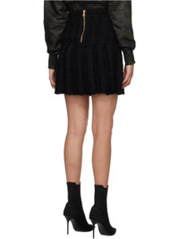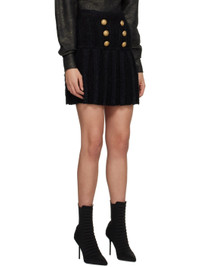 Hemp and viscose-blend tweed skirt. Pleats throughout. · Button detailing at front · Zip closure at back · Unlined · Logo-engraved gold-tone hardware Supplier color: Noir 32% hemp, 30% viscose, 18% polyamide, 9% cotton, 6% polyester, 5% linen. Made in France 231251F090039