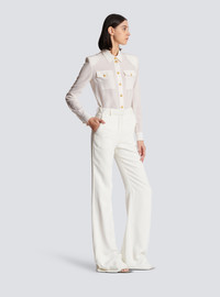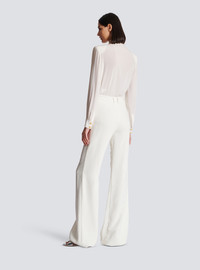 High-waisted crepe trousers - Flared cut - Fastening with zip and concealed hooks on the front - 2 slanted pockets - Invisible hem - Model measures 180cm and wears a size 36 - Main material: 97% viscose 3% elastane - Made in Romania - Item: CF1PO105VE17100% of the viscose fibres used to make this garment come from responsibly managed and FSC®-certified forests